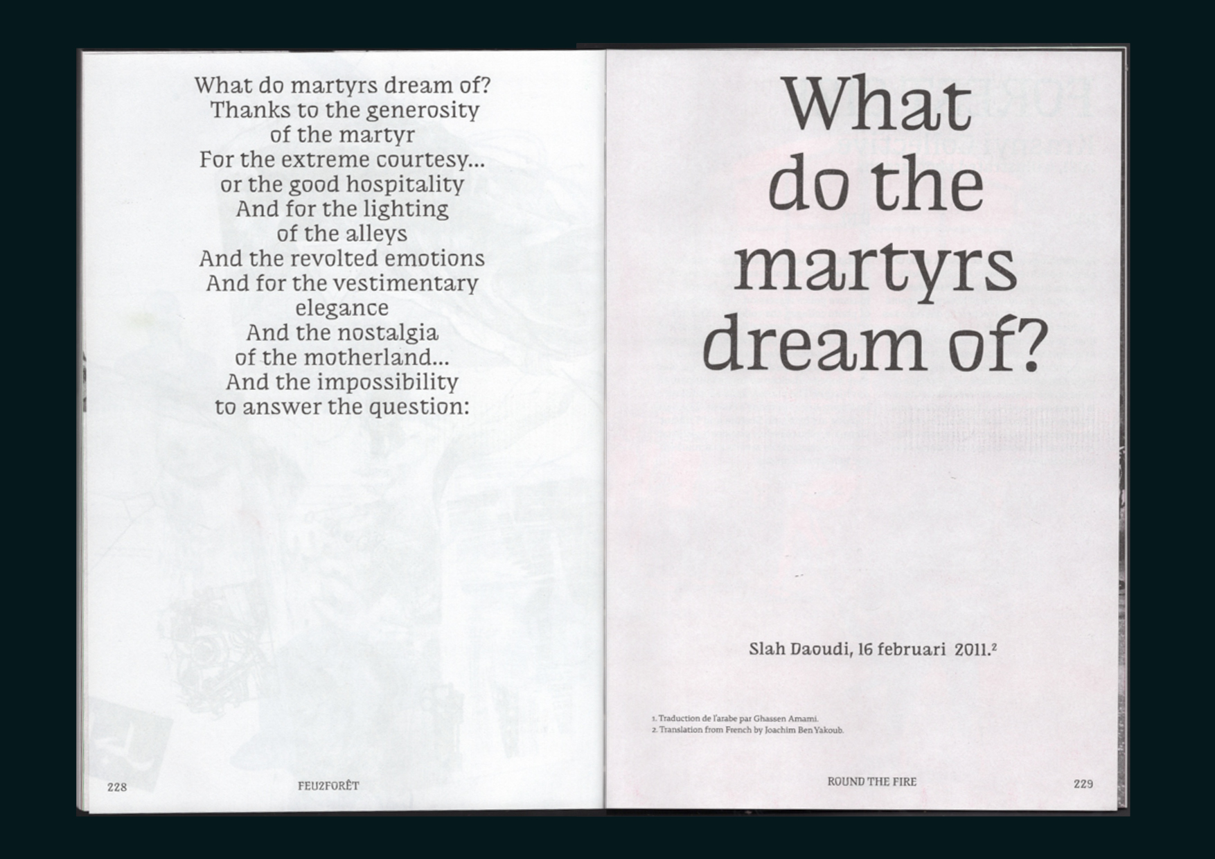‘FEU2FORÊT. A song of dignity?’ is a collective publication that seeks to pass on the stories told around the fire of the FEU2FORÊT exhibition, which took place in Forest in November 2021.